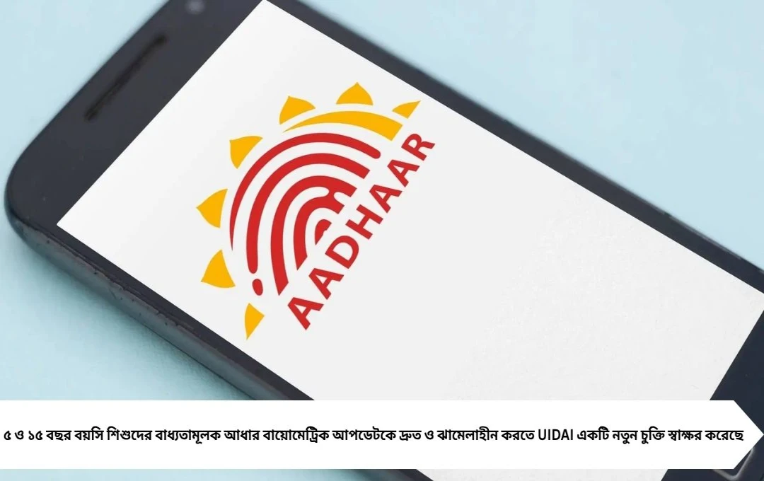১৩ নভেম্বর UIDAI একটি গুরুত্বপূর্ণ চুক্তি স্বাক্ষর করে জানায় যে, শিশুদের বাধ্যতামূলক বায়োমেট্রিক আপডেট এখন থেকে আরও সুনির্দিষ্টভাবে সম্পন্ন হবে।এই উদ্যোগ মূলত তৈরি করা হয়েছে ৫ বছর ও ১৫ বছর বয়সি শিশুদের জন্য, যাদের বায়োমেট্রিক আপডেট আইনত বাধ্যতামূলক, কিন্তু বহু ক্ষেত্রেই তা সময়মতো হয় না।