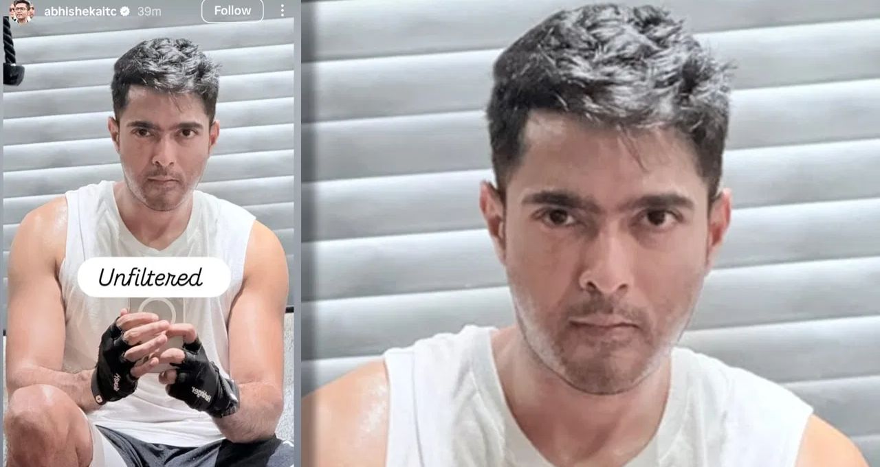 শনিবার দুপুরে ইনস্টাগ্রাম স্টোরিজে অভিষেক বন্দ্যোপাধ্যায় একটি জিম সেলফি পোস্ট করেন। ছবিতে দেখা যায়, তাঁর পরনে কালো ভেস্ট ও শর্টস। দু’হাতে গ্লাভস পরে ফোন ধরে আয়নার সামনে দাঁড়িয়ে ছবি তুলেছেন তিনি। পেশিবহুল হাত ও ঘামে ভেজা শরীর দেখে প্রথমে অনেকেই ছবির সত্যতা নিয়ে সন্দিহান হয়ে পড়েন।