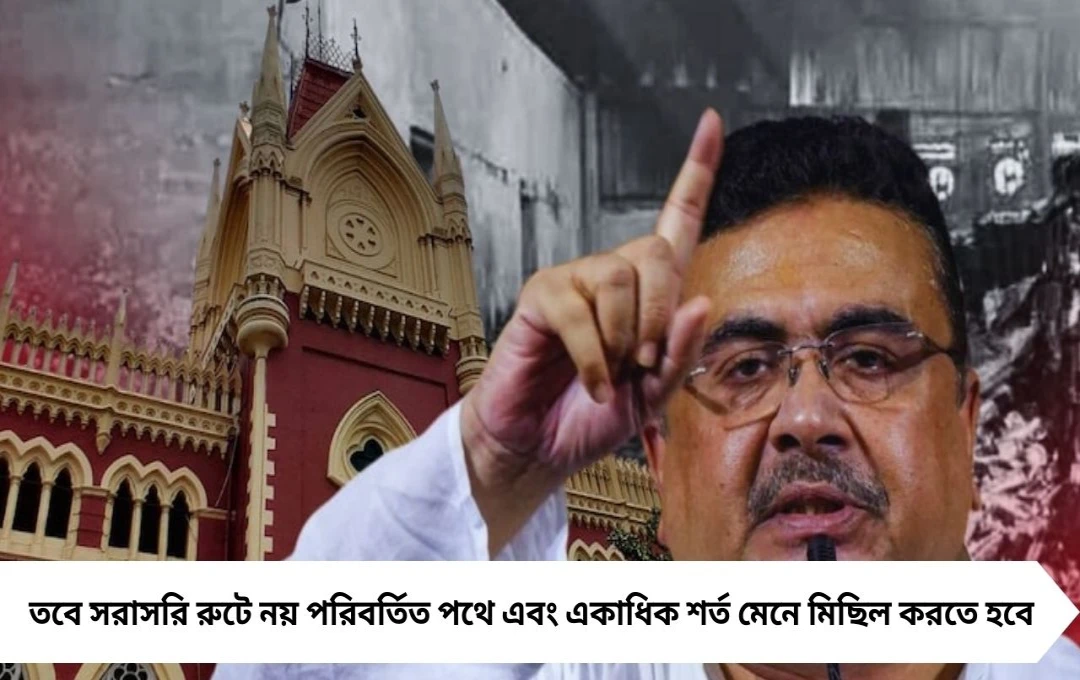 বিচারপতি শুভ্রা ঘোষের নির্দেশে শুভেন্দু অধিকারীর নেতৃত্বে প্রতিবাদ মিছিলের অনুমতি দেওয়া হয়েছে, তবে পূর্বনির্ধারিত রুটে নয়। আদালত জানিয়েছে,