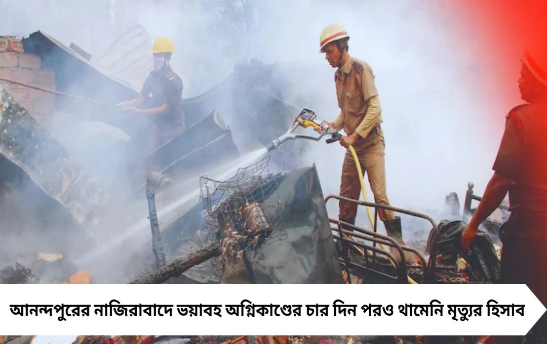 আনন্দপুরের নাজিরাবাদে ভয়াবহ অগ্নিকাণ্ডের চার দিন পরও থামেনি মৃত্যুর হিসাব। ধ্বংসস্তূপ সরানোর সময় উদ্ধার হয়েছে আরও চারটি অগ্নিদগ্ধ দেহ। সব মিলিয়ে এই মর্মান্তিক ঘটনায় মৃতের সংখ্যা বেড়ে দাঁড়াল ২৫।