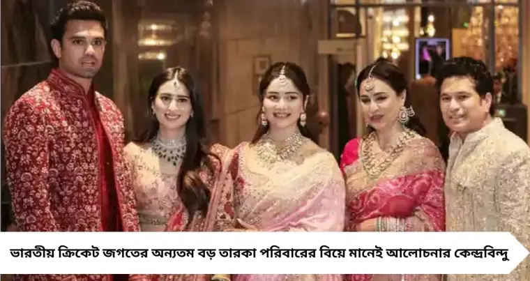 ভারতীয় ক্রিকেট জগতের অন্যতম বড় তারকা পরিবারের বিয়ে মানেই আলোচনার কেন্দ্রবিন্দু। অবশেষে সেই অপেক্ষার অবসান। কিংবদন্তি ক্রিকেটার Sachin Tendulkar–এর ছেলে Arjun Tendulkar গাঁটছড়া বাঁধলেন সানিয়া চান্দোকের সঙ্গে। জমকালো এই বিয়ের অনুষ্ঠান ঘিরে ছিল তারকাদের সমাবেশ। বলিউড থেকে ব্যবসায়ী মহল—সবাই যেন হাজির ছিলেন এই বিশেষ দিনে।