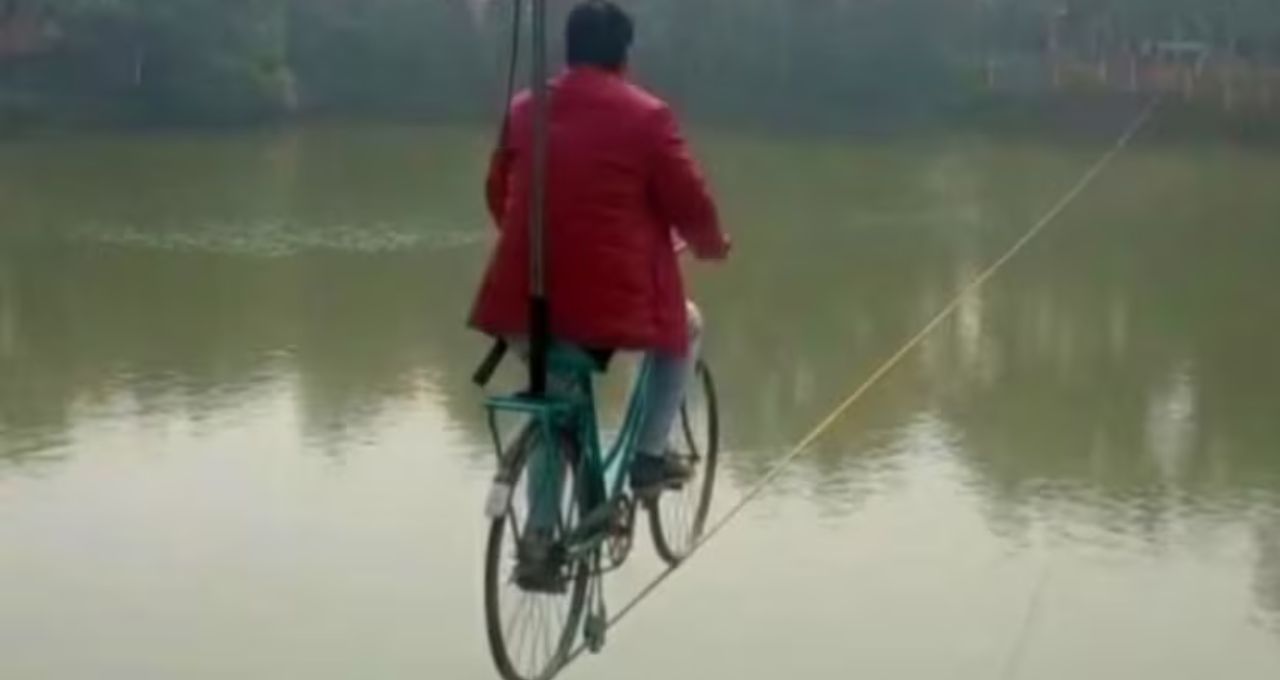 Sky Cycling: মাটির অনেকটা উপরে দড়ির উপর সাইকেল চালানোর অভিজ্ঞতা
