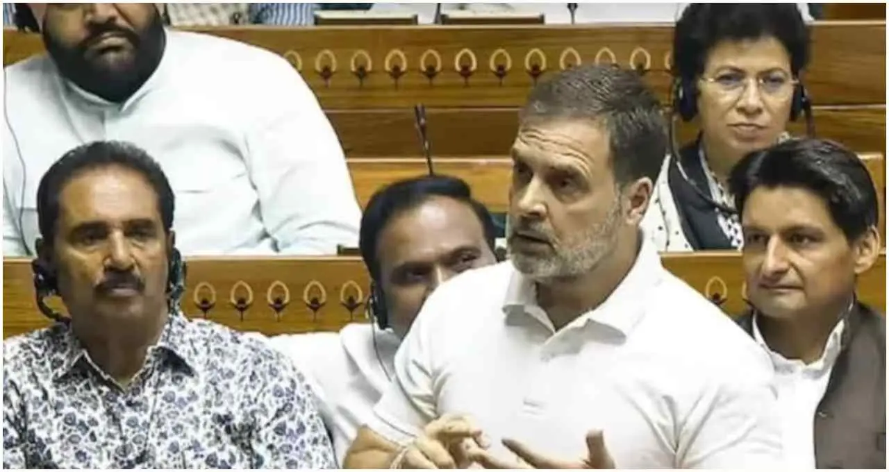 লোকসভায় দেওয়া ভাষণে রাহুল গান্ধী রাজনীতির সঙ্গে মার্শাল আর্টের তুলনা করেছিলেন। তিনি বলেন, যেমন খেলায় গ্রিপ ও চোক থাকে, তেমনই রাজনীতিতেও কিছু শক্তি চাপ সৃষ্টি করে। কেন্দ্রীয় সংসদীয় বিষয়ক মন্ত্রী কিরেন রিজিজু এই মন্তব্যের বিরুদ্ধে আপত্তি জানান এবং বলেন, সংসদের মতো মঞ্চে এ ধরনের শব্দ প্রয়োগ গ্রহণযোগ্য নয়। এর পরই তাঁর ভাষণ নিয়ে নোটিস দাখিলের প্রক্রিয়া এগিয়ে যায়।