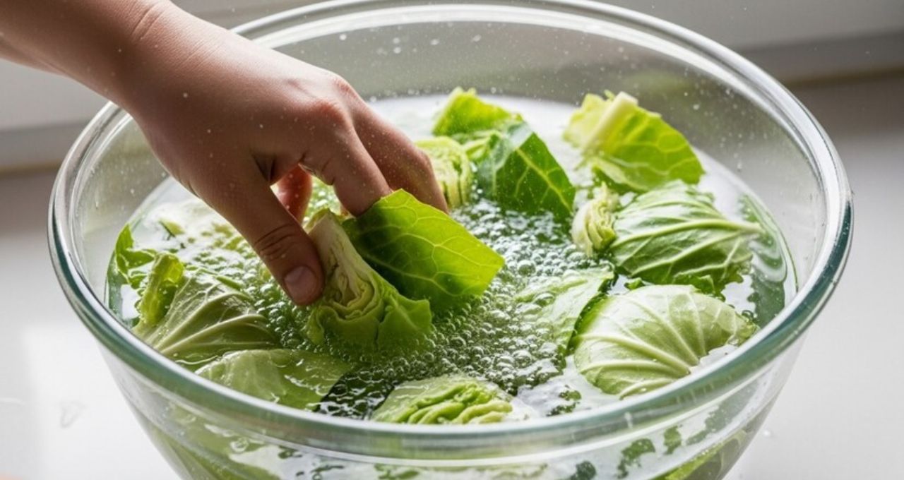 কাটা বাঁধাকপি পরিষ্কার জলে ১০–১৫ মিনিট ভিজিয়ে রাখা উচিত। চাইলে জলে সামান্য লবণ মেশানো যেতে পারে। এতে লুকিয়ে থাকা পোকামাকড় ও ব্যাকটেরিয়া বেরিয়ে আসে। কেউ কেউ ভিনেগার বা বেকিং সোডাও ব্যবহার করেন কীটনাশকের প্রভাব কমাতে।