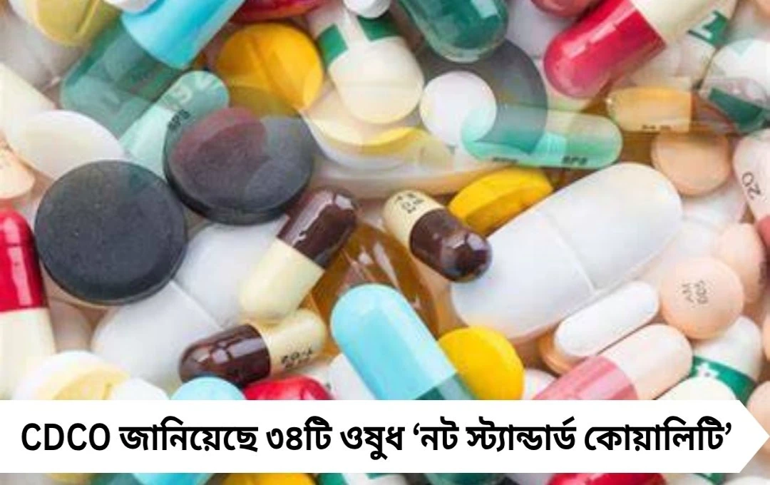 CDCO Report: সেন্ট্রাল ড্রাগ স্ট্যান্ডার্ড কন্ট্রোল অর্গানাইজেশন জানিয়েছে, এই ৩৪টি ওষুধ নিম্নমানের বা কার্যকর উপাদান অপ্রতুল। কলকাতার ল্যাব পরীক্ষায় দেখা গেছে, ক্যালসিয়াম কার্বনেট ট্যাবলেটে ক্যালসিয়ামের অস্তিত্ব নেই। একইভাবে, প্যারাসিটামল ও অ্যান্টিবায়োটিকের কিছু ব্যাচও পরীক্ষা পাস করতে পারেনি।