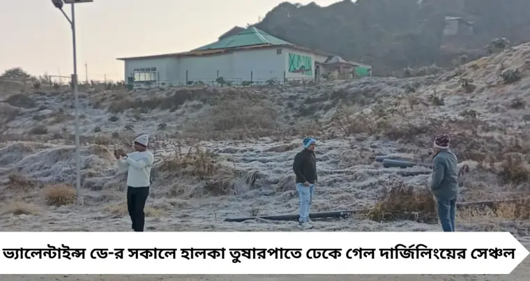 ১৪ ফেব্রুয়ারি ভালোবাসার দিনে হঠাৎ তুষারপাতে সাদা হয়ে উঠল দার্জিলিং-এর সেঞ্চল এলাকা। শীতের শেষ প্রহরে এমন বরফঝরা সকাল পেয়ে উচ্ছ্বসিত পর্যটক থেকে স্থানীয় ব্যবসায়ীরা। অনেকের মতে, এটাই হয়তো মরশুমের শেষ তুষারপাত।