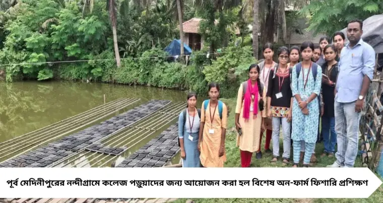 পূর্ব মেদিনীপুরের নন্দীগ্রামে কলেজ পড়ুয়াদের জন্য আয়োজন করা হল বিশেষ অন-ফার্ম ফিশারি প্রশিক্ষণ। লক্ষ্য—প্রাণীবিদ্যা ও পরিবেশবিদ্যার ছাত্রছাত্রীদের মাছ, কাঁকড়া ও চিংড়ি চাষে উৎসাহিত করে স্বনির্ভর কর্মসংস্থানের পথ দেখানো।