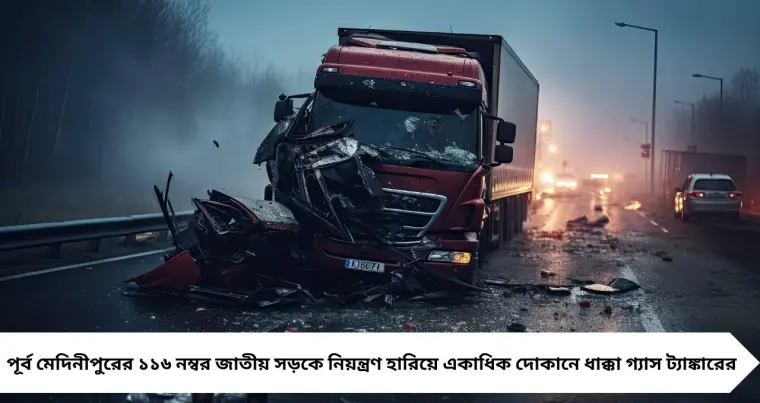 পূর্ব মেদিনীপুরের ১১৬ নম্বর জাতীয় সড়কে যান্ত্রিক ত্রুটিতে নিয়ন্ত্রণ হারিয়ে একাধিক দোকানে ঢুকে পড়ে গ্যাসবাহী ট্যাঙ্কার। আহত অন্তত ২০ জন, তাঁদের মধ্যে ৬ জনের অবস্থা গুরুতর। ঘটনাস্থলে পুলিশ, হাসপাতালে আহতদের দেখতে বিধায়িকা।