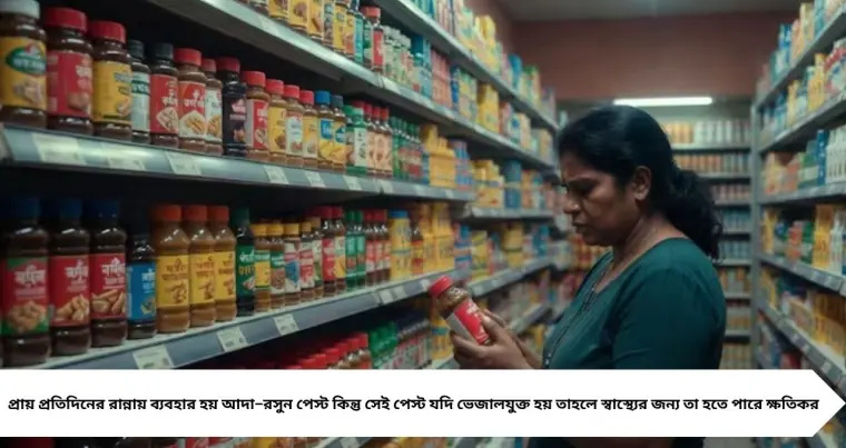 বাজারে পাওয়া আদা–রসুন পেস্টে ভেজাল মেশানোর অভিযোগ নতুন নয়। টেক্সচার, জল পরীক্ষা, রঙ এবং প্যাকেজিংয়ের তথ্য দেখে সহজেই খাঁটি-নকল চেনা যায়। বিশেষজ্ঞদের মতে, নিরাপত্তার জন্য ঘরেই তাজা পেস্ট তৈরি করাই সেরা উপায়।