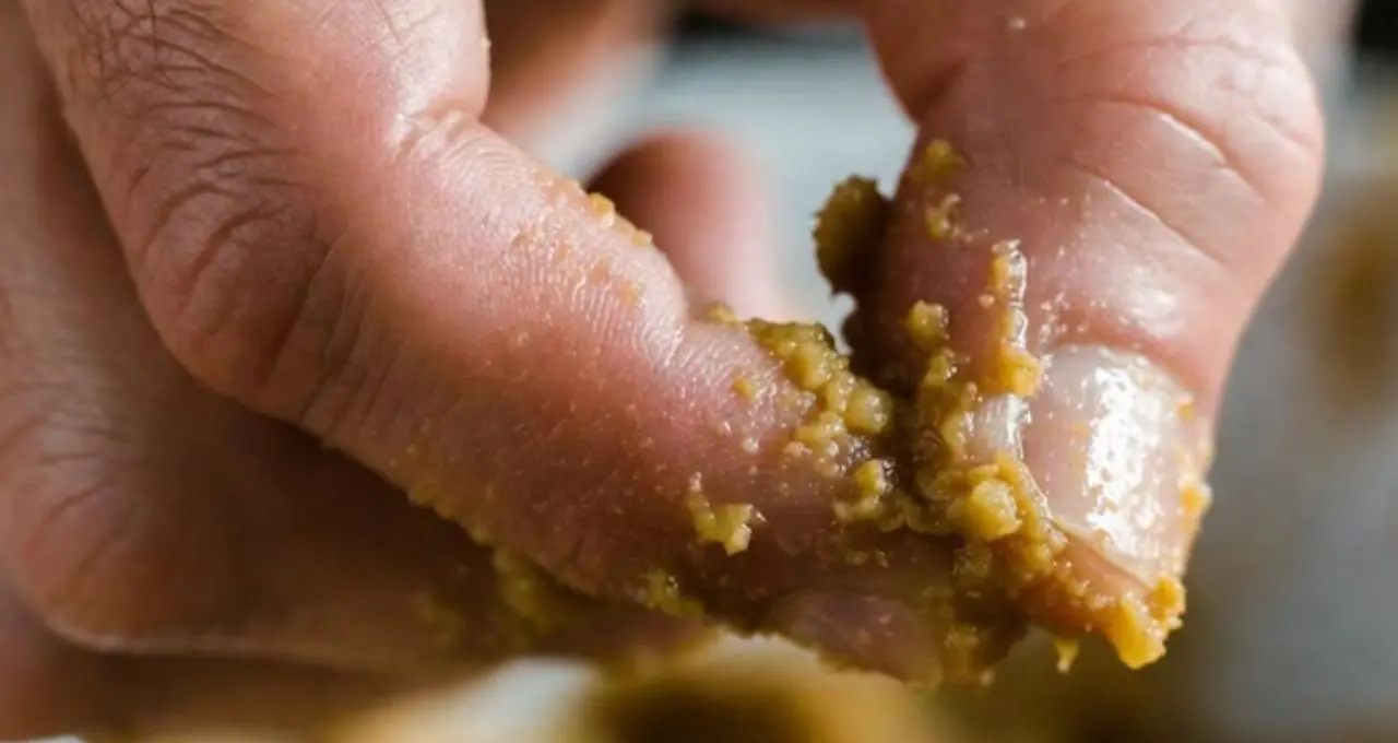 খসখসে, দানাদার বা দলা দলা হলে স্টার্চ বা সস্তা উপাদান মেশানোর সন্দেহ থাকতে পারে