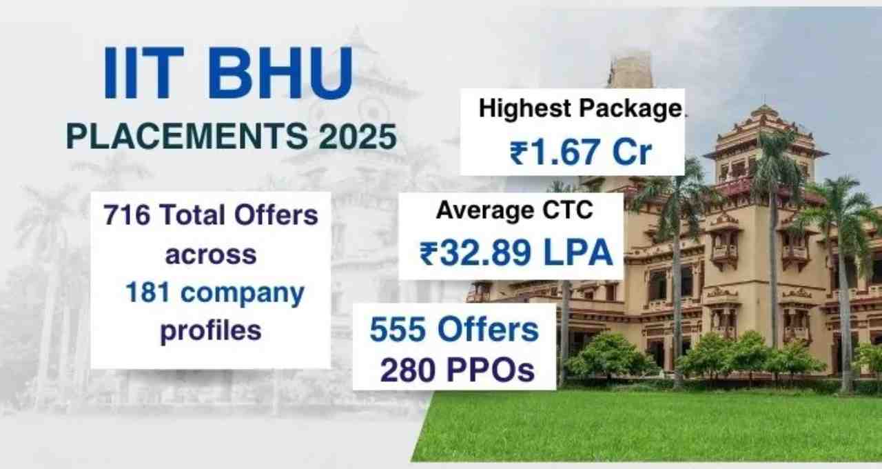 IIT BHU-এর ক্যাম্পাস প্লেসমেন্ট 2025 রেকর্ড গতিতে এগিয়ে চলেছে। মাত্র 5 দিনে 1000-এর বেশি শিক্ষার্থীকে চাকরির প্রস্তাব দেওয়া হয়েছে। 1700-এর বেশি শিক্ষার্থী রেজিস্ট্রেশন করেছে এবং 1.67 কোটি টাকা পর্যন্ত উচ্চ প্যাকেজও দেখা গেছে।