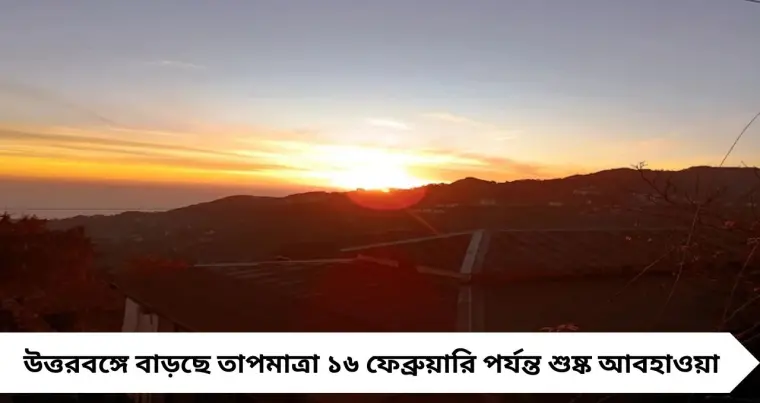 দার্জিলিং, জলপাইগুড়ি, কালিম্পং, আলিপুরদুয়ার, কোচবিহার, উত্তর দিনাজপুর ও মালদা—উত্তরবঙ্গের সব জেলাতেই আগামী ১৬ ফেব্রুয়ারি (সোমবার) পর্যন্ত শুষ্ক আবহাওয়া বজায় থাকবে। বৃষ্টির কোনও সম্ভাবনা নেই বললেই চলে।আবহাওয়াবিদদের মতে, কিছু জেলায় দিনের সর্বোচ্চ তাপমাত্রা ৩০ ডিগ্রি সেলসিয়াস পর্যন্ত পৌঁছাতে পারে। ফলে দুপুরের দিকে গরমের অস্বস্তি বাড়তে পারে।