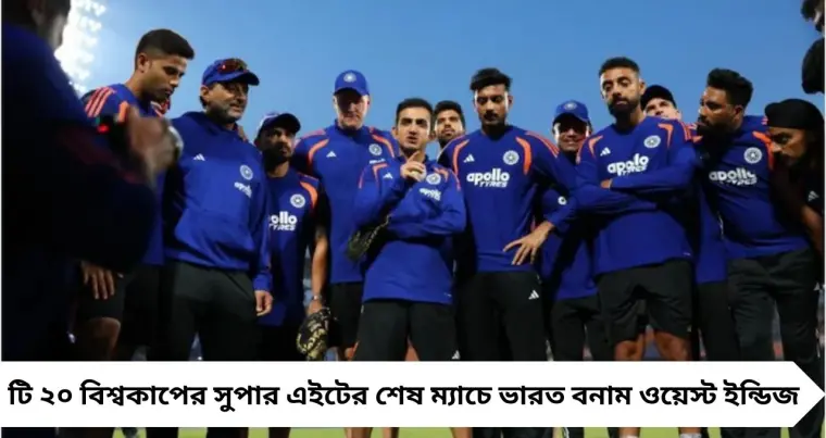 টি-২০ বিশ্বকাপের সুপার এইটের শেষ ম্যাচে ভারত বনাম ওয়েস্ট ইন্ডিজ। কলকাতার Eden Gardens-এ জিতলেই সেমিফাইনাল নিশ্চিত। জিম্বাবোয়ের বিরুদ্ধে বড় জয়ের পরও দলে বদলের ভাবনা টিম ম্যানেজমেন্টের। স্পিন বিভাগ ও ষষ্ঠ বোলার নিয়ে চলছে জোর আলোচনা।