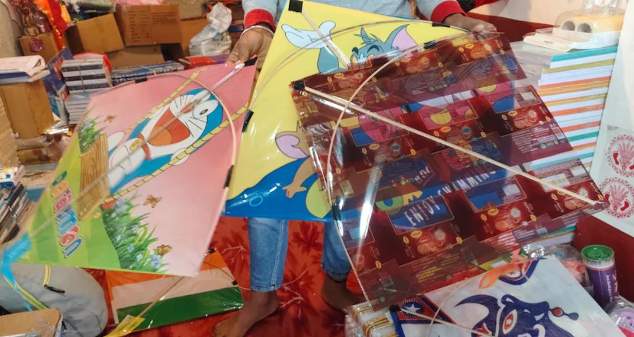 পৌষ সংক্রান্তি মানেই জলপাইগুড়ির আকাশজুড়ে ঘুড়ির রাজত্ব। মাত্র ৫ টাকা থেকে শুরু ঘুড়ির দাম। রঙিন পেটকাটি, ক্যালকাট্টাইয়া ঘুড়ি আর মাঞ্জা সুতোর চাহিদায় জমজমাট শহরের বাজার।