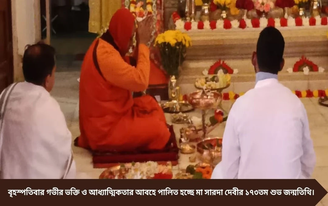 বৃহস্পতিবার ভোরে মঙ্গলারতি দিয়ে শুরু হয়েছে মা সারদার জন্মতিথির পূজা-পার্বণ। আশ্রমজুড়ে ধূপধুনো, মন্ত্রোচ্চারণ ও শান্তিময় পরিবেশ ভক্তদের মনকে আরও পবিত্র করে তুলেছে। ভোর থেকেই শতাধিক ভক্ত আশ্রমে উপস্থিত হয়ে নিজের চোখে এই শুভক্ষণ প্রত্যক্ষ করেছেন।এরপর ভোর ৫টায় বেদান্ত পাঠের মধ্য দিয়ে শুরু হয় দিনের আধ্যাত্মিক শিক্ষার অধ্যায়। বিশেষ পূজা সকাল ৭টায় শুরু হওয়ার আগেই আশ্রমের সামনে লম্বা লাইনে দাঁড়িয়েছিলেন অনেকেই।