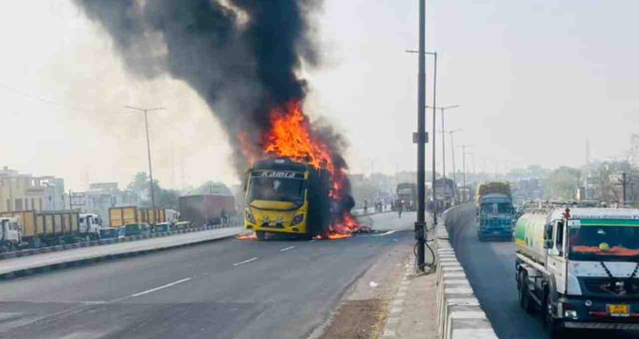 কানপুর থেকে একটি ভয়ঙ্কর ঘটনা সামনে এসেছে, যেখানে দিল্লি থেকে বারাণসীগামী একটি স্লিপার বাসে শুক্রবার সকালে হঠাৎ আগুন লেগে যায়। দুর্ঘটনাটি এতটাই ভয়ানক ছিল যে বাসটি পুরোপুরি ভস্মীভূত হয়ে যায়, তবে কাছাকাছি থাকা দুই পুলিশকর্মীর বীরত্ব ও তৎপরতায় ৩৮ জন যাত্রী নিরাপদে বেরিয়ে আসতে সক্ষম হন।
