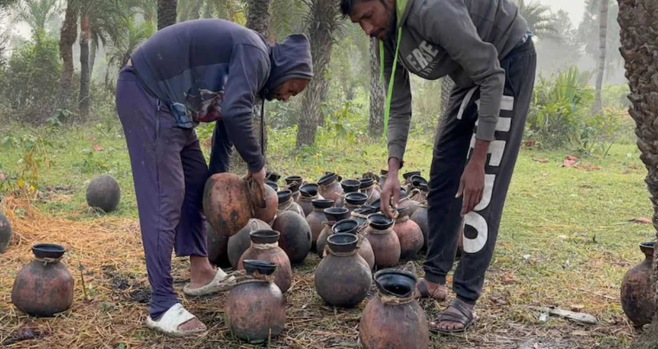 বিকেল গড়ালেই গাছিরা খেজুর গাছে বিশেষভাবে হাঁড়ি বেঁধে দেন। সারা রাত ধরে গাছ থেকে রস ঝরে পড়ে সেই হাঁড়িতে। ভোর হতেই গাছ থেকে নামানো হয় তাজা রসে ভরা হাঁড়ি—এটাই পাটালি তৈরির প্রথম ধাপ।