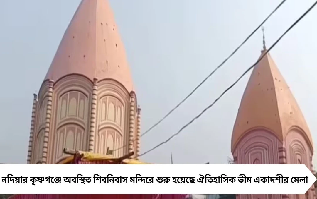 নদিয়ার কৃষ্ণগঞ্জে অবস্থিত শিবনিবাস মন্দিরে শুরু হয়েছে ঐতিহাসিক ভীম একাদশীর মেলা। এশিয়ার দ্বিতীয় বৃহত্তম শিবলিঙ্গকে কেন্দ্র করে আয়োজিত এই মেলায় কয়েক লক্ষ ভক্তের সমাগম হয়। বিশেষ খই নিবেদন, পৌরাণিক বিশ্বাস ও শতাব্দীপ্রাচীন রীতিই এই মেলার মূল আকর্ষণ।