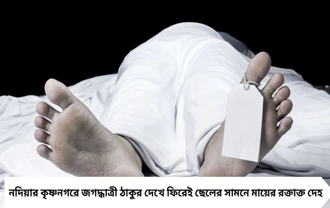 নদিয়ার কৃষ্ণনগরে এক বিধবা মহিলার রহস্যমৃত্যুতে চাঞ্চল্য। জগদ্ধাত্রী ঠাকুর দেখে বাড়ি ফেরার পর ঘরের মধ্যে রক্তাক্ত অবস্থায় মায়ের দেহ দেখে আঁতকে ওঠেন ছেলে। মৃতা শোভা বিশ্বাসের দেহে একাধিক আঘাতের চিহ্ন পাওয়া গেছে। পুলিশ খুনের মামলা রুজু করে তদন্ত শুরু করেছে।