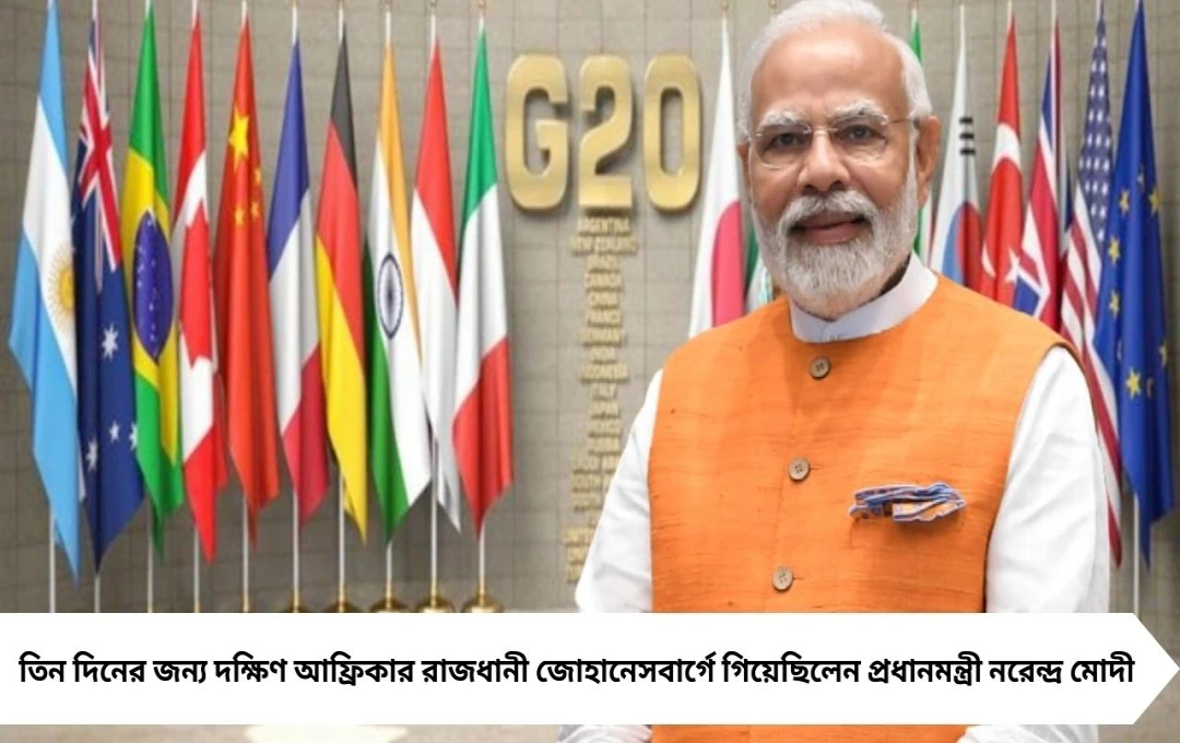 তিন দিনের জন্য দক্ষিণ আফ্রিকার রাজধানী জোহানেসবার্গে গিয়েছিলেন প্রধানমন্ত্রী নরেন্দ্র মোদী। যোগ দিয়েছেন জি-২০ শীর্ষ সম্মেলনে। প্রধানমন্ত্রী মোদীর আগমনে দক্ষিণ আফ্রিকার মানুষদের মধ্যে দেখা গেছে ব্যাপক উচ্ছ্বাস। বৈঠক, আলোচনায় অংশগ্রহণ, ‘ত্রিশক্তি’ গঠন ও সামাজিক মাধ্যমে ছবি-ভিডিও পোস্ট করার মাধ্যমে প্রতিটি মুহূর্তে নজর কেড়েছেন মোদী। যুব প্রজন্ম থেকে সাধারণ নাগরিকরা তারকার মতো প্রধানমন্ত্রীকে স্বাগত জানিয়েছেন।