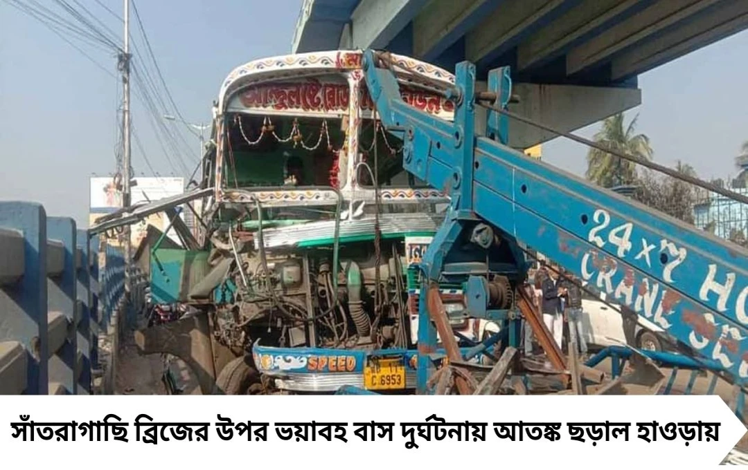 স্থানীয় সূত্রে জানা গিয়েছে, সাঁতরাগাছি ব্রিজের মাঝামাঝি অংশে দ্রুতগতিতে চলছিল দুটি বাস। অভিযোগ, এক বাস অপরটিকে ওভারটেক করতে গিয়ে নিয়ন্ত্রণ হারিয়ে মুখোমুখি ধাক্কা মারে। সংঘর্ষের তীব্রতায় দুটি গাড়ির সামনের অংশ ব্যাপকভাবে ক্ষতিগ্রস্ত হয়।