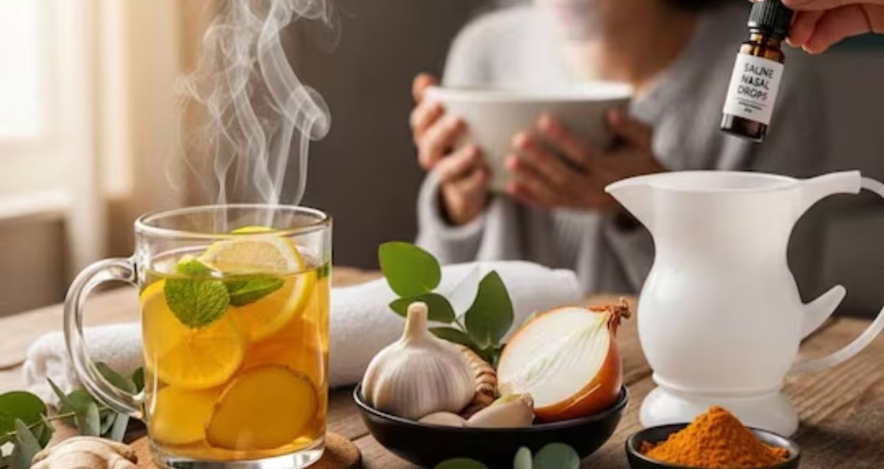 উষ্ণ তুলসির চা, আদার কाढ़া বা সবজি স্যুপ নাকের ফোলাভাব কমায় এবং শরীরকে গরম ও সক্রিয় রাখে।