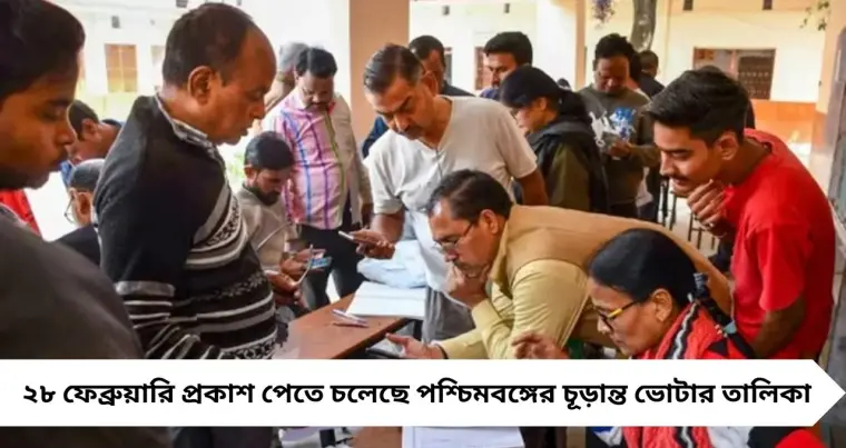 পশ্চিমবঙ্গে বিশেষ নিবিড় সংশোধনী (SIR) পর্বের পর ২৮ ফেব্রুয়ারি শনিবার প্রকাশিত হতে চলেছে চূড়ান্ত ভোটার তালিকা। যদিও দুপুরের আগে তালিকা হাতে পাওয়া যাবে না বলেই ইঙ্গিত মিলেছে। অনলাইন ও অফলাইন—দুই পদ্ধতিতেই ভোটাররা নিজেদের নাম যাচাই করতে পারবেন। সুপ্রিম কোর্টের নির্দেশ মেনেই এই প্রকাশ।