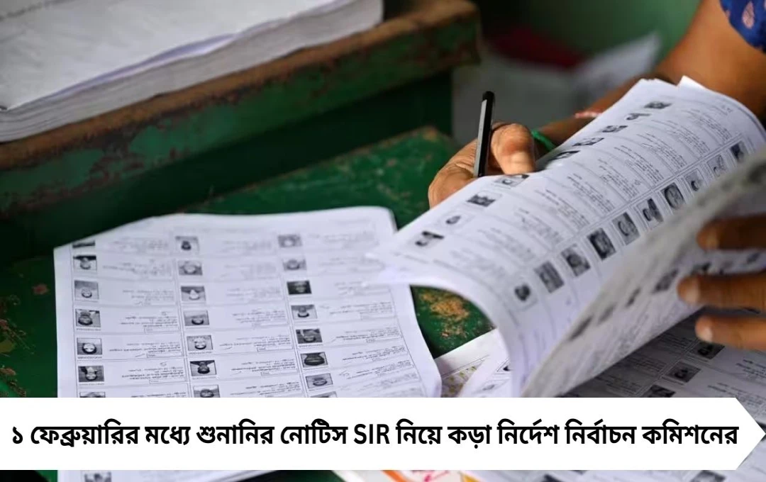ভোটার তালিকার নিবিড় সংশোধন (SIR) প্রক্রিয়া দ্রুত শেষ করতে কড়া সময়সীমা বেঁধে দিল নির্বাচন কমিশন। ১ ফেব্রুয়ারি রবিবার বিকেল পাঁচটার মধ্যে শুনানির নোটিস জারি, সাত দিনের মধ্যে শুনানি ও ডকুমেন্ট আপলোড সম্পূর্ণ করার নির্দেশ দেওয়া হয়েছে।
