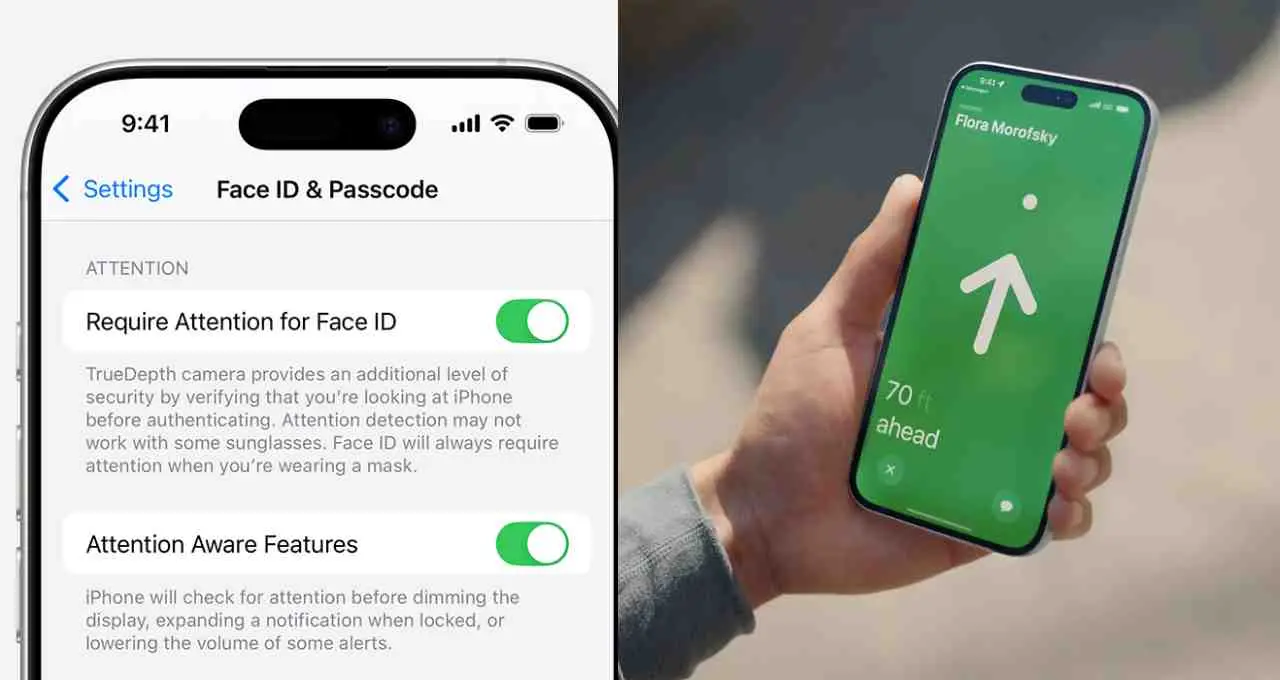 এই ফিচার সক্রিয় থাকলে ব্যবহারকারী ঘুমিয়ে থাকলে বা অন্যদিকে মনোযোগী থাকলে কেউ মুখের সামনে ফোন এনে আনলক করতে পারবে না। এটি চালু করতে Settings-এ গিয়ে Face ID & Passcode-এ ট্যাপ করে “Require Attention” অপশন সক্রিয় করতে হবে।