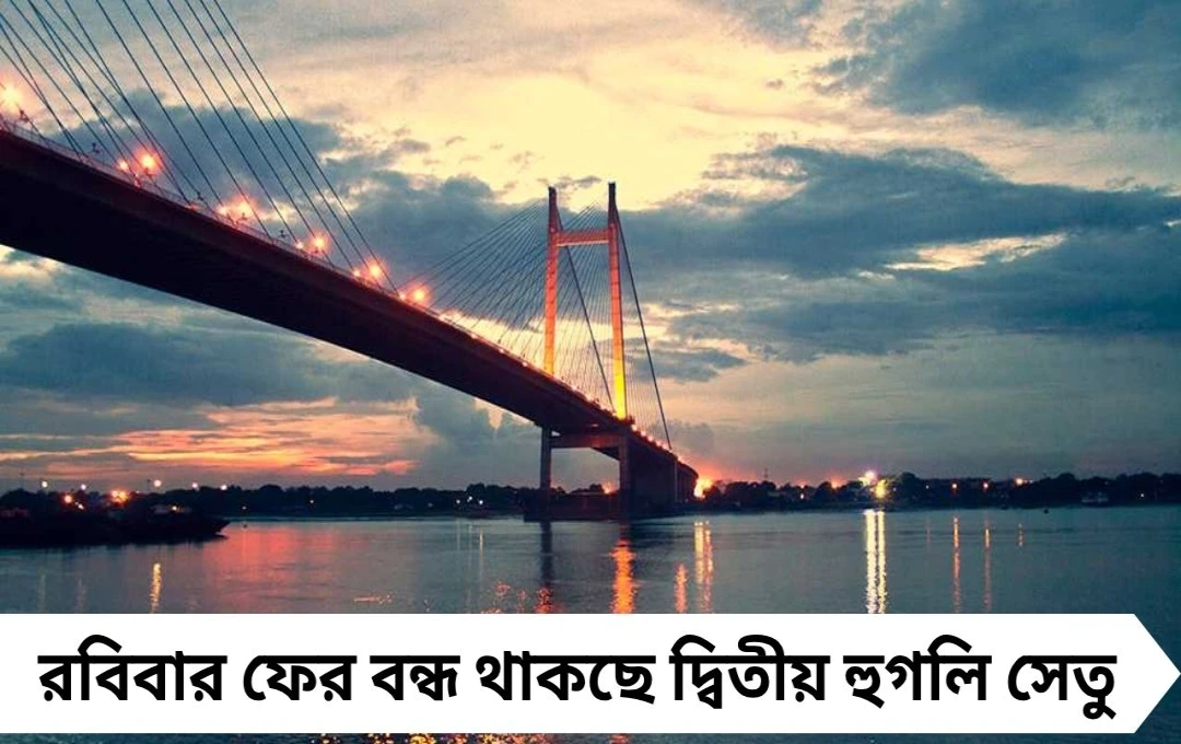রবিবার ফের বন্ধ থাকছে দ্বিতীয় হুগলি সেতু। কলকাতা পুলিশের নির্দেশ অনুযায়ী, ১৬ নভেম্বর ভোর ৫টা থেকে রাত ৯টা পর্যন্ত সম্পূর্ণ বন্ধ থাকবে যান চলাচল। সেতুর রক্ষণাবেক্ষণের কাজেই এই সিদ্ধান্ত। নিত্যযাত্রীদের জন্য বিকল্প রুটের পরামর্শ দিয়েছে ট্র্যাফিক বিভাগ।
