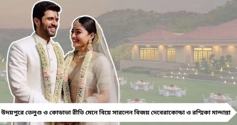 উদয়পুরে দক্ষিণী আচার মেনে গাঁটছড়া বাঁধলেন Vijay Deverakonda ও Rashmika Mandanna। আবেগঘন পোস্টে রশ্মিকার ঘোষণা—“আমার স্বামীর সঙ্গে পরিচয় করিয়ে দিচ্ছি… মিঃ বিজয় দেবেরাকোন্ডা।” সঙ্গীত থেকে রিসেপশন—চার দিনের জমকালো আয়োজন ঘিরে তুমুল উচ্ছ্বাস ভক্তমহলে।
