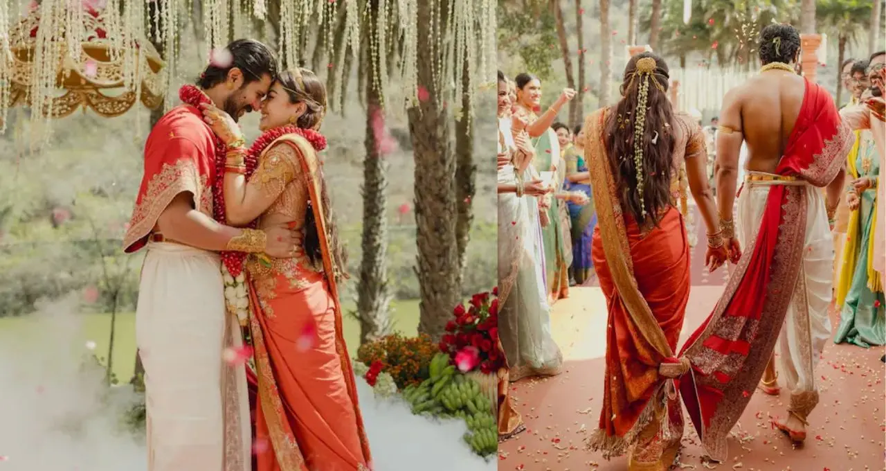 দীর্ঘদিনের জল্পনা-কল্পনার পর অবশেষে প্রকাশ্যে এল সুখবর। রাজকীয় পরিবেশে, ঐতিহ্য মেনে বিয়ে সারলেন দক্ষিণের এই জনপ্রিয় জুটি। সকালে তেলুগু রীতিতে, পরে কোডাভা আচার—দু’মতে বিয়ে, আর সেই মুহূর্তের প্রথম ছবি শেয়ার করলেন রশ্মিকা নিজেই।