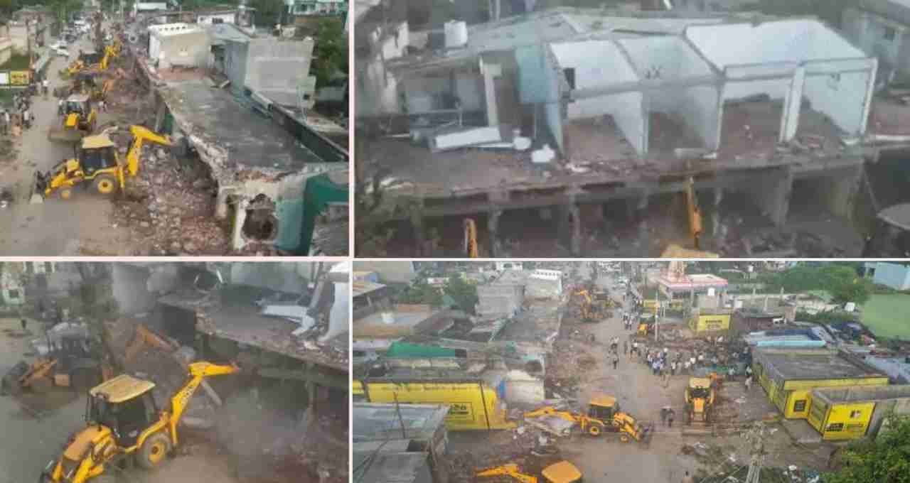 Gandhinagar SP Ravi Teja Vasamsetty stated that action is being taken against a total of 186 commercial establishments in Bahiyal village. He mentioned that the SDM, Panchayat officials, and 300 police personnel have been deployed to maintain law and order during the demolition drive. He informed that the commercial properties of individuals involved in the stone-pelting incident a few days ago were identified, and action is being taken against them today.