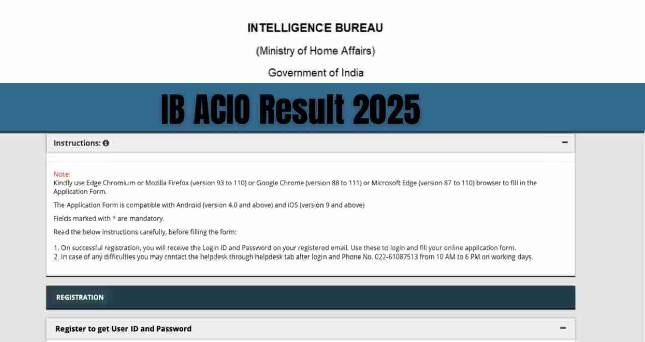 IB ACIO Result 2025: The IB ACIO Result 2025 can be declared at any time by the Intelligence Bureau (IB). Candidates who appeared in this recruitment examination will be able to view and download their scorecard by visiting the official website mha.gov.in. The Tier-1 examination was conducted on September 16, 17, and 18, 2025, at various examination centers across the country. Now, millions of candidates are eagerly awaiting their results.