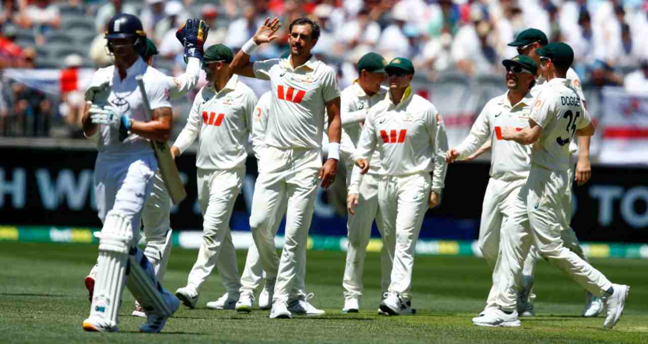 પર્થ ટેસ્ટના પ્રથમ દિવસે ઇંગ્લેન્ડના કેપ્ટન બેન સ્ટોક્સે ટોસ જીતીને પ્રથમ બેટિંગ કરવાનો નિર્ણય કર્યો. ઇંગ્લેન્ડની આખી ટીમ તેની પ્રથમ ઇનિંગમાં 33 ઓવરમાં માત્ર 172 રનમાં ઓલઆઉટ થઈ ગઈ. આ ઘાતક ઇનિંગમાં મિચેલ સ્ટાર્કે જેક ક્રાઉલી (0), બેન ડકેટ (21), જો રૂટ (0), કેપ્ટન બેન સ્ટોક્સ (6), જેમી સ્મિથ (33), ગસ એટકિન્સન (1) અને માર્ક વુડ (0) ની વિકેટો ઝડપી.
