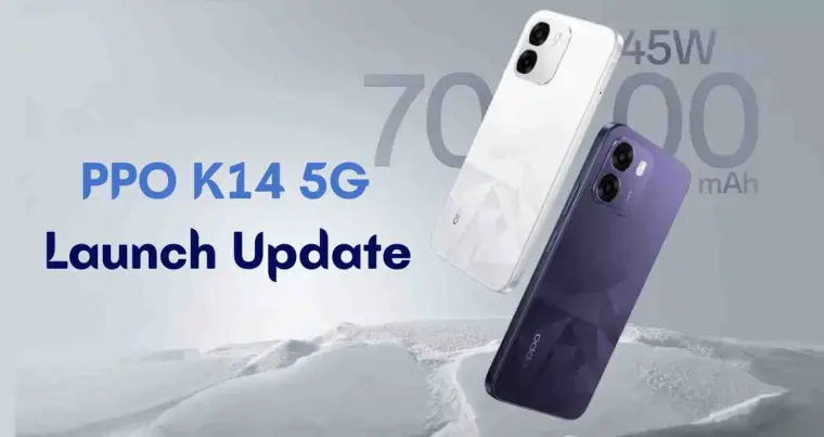PPO K14 5G Launch Update: स्मार्टफोन कंपनी OPPO भारत में 9 मार्च को अपना नया बजट 5G फोन OPPO K14 5G लॉन्च करने जा रही है। यह डिवाइस लगभग 18,000 से 20,000 रुपये की कीमत में पेश किया जा सकता है और इसे ई-कॉमर्स प्लेटफॉर्म Flipkart पर लिस्ट किया जा चुका है। फोन में 7000mAh की बड़ी बैटरी, 120Hz रिफ्रेश रेट वाला डिस्प्ले और MediaTek Dimensity 6300 प्रोसेसर जैसे फीचर्स मिलने की संभावना है। कंपनी इसे मिड-रेंज सेगमेंट में पेश कर रही है, जहां यह Realme, Redmi और Vivo जैसे ब्रांड के 5G स्मार्टफोन्स को टक्कर दे सकता है।