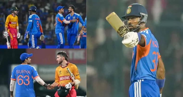 टॉस जीतकर जिम्बाब्वे के कप्तान सिकंदर रजा ने पहले गेंदबाजी का फैसला किया, लेकिन भारतीय बल्लेबाजों ने शुरुआत से ही आक्रामक रुख अपनाया। सलामी बल्लेबाज संजू सैमसन और अभिषेक शर्मा ने पहले विकेट के लिए केवल 22 गेंदों में 48 रन जोड़कर टीम को तेज शुरुआत दिलाई। सैमसन ने 15 गेंदों में 23 रन बनाए, जबकि इसके बाद आए ईशान किशन ने भी शानदार बल्लेबाजी करते हुए 24 गेंदों में 38 रन बनाए, जिसमें चार चौके और एक छक्का शामिल था।