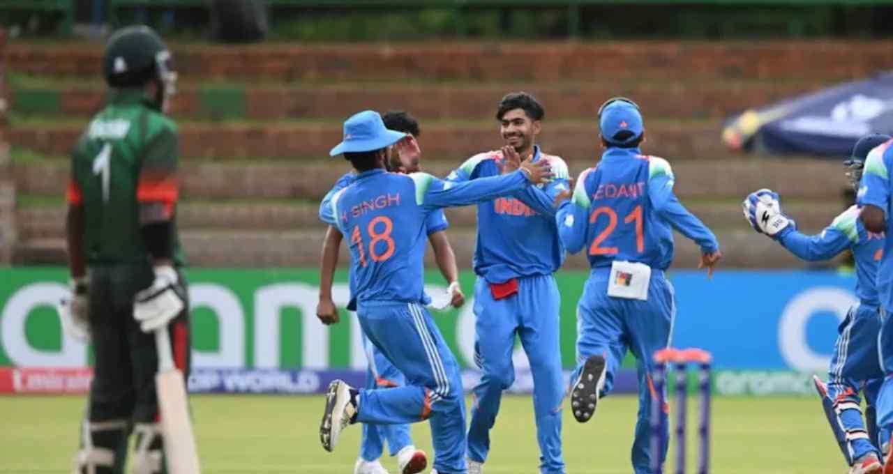 बारिश के बाद जैसे ही खेल शुरू हुआ, भारतीय गेंदबाज विहान मल्होत्रा ने मैच का रुख पूरी तरह बदल दिया। विहान ने शानदार लाइन और लेंथ के साथ गेंदबाजी करते हुए बांग्लादेशी बल्लेबाजों को खुलकर खेलने का मौका नहीं दिया। उन्होंने कलाम सिद्दीकी को 15 रन पर और परवेज जिबोन को 7 रन पर आउट कर भारत को बड़ी सफलता दिलाई।