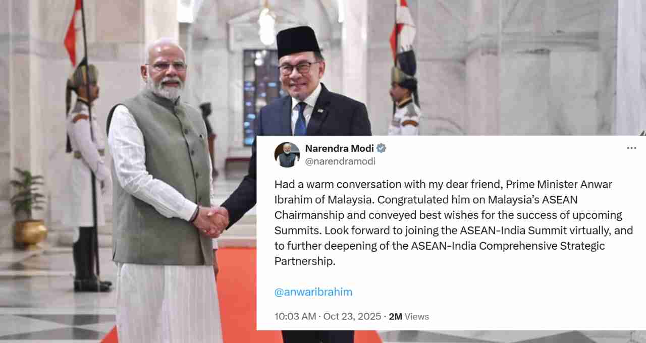 पीएम मोदी ने अपने संबोधन में मलेशिया की आसियान अध्यक्षता के लिए प्रधानमंत्री अनवर इब्राहिम को बधाई दी। उन्होंने शिखर सम्मेलन की सफलता की कामना की और कहा कि वर्चुअल शामिल होकर भी भारत और आसियान के बीच व्यापार, निवेश और रक्षा सहयोग को बढ़ावा देंगे। उन्होंने अपने सोशल मीडिया पोस्ट में इसे मित्रता और रणनीतिक सहयोग का प्रतीक बताया।