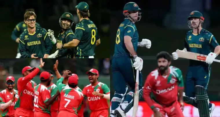 ਓਮਾਨ ਨੇ ਪਹਿਲਾਂ ਬੱਲੇਬਾਜ਼ੀ ਕਰਦੇ ਹੋਏ 16.2 ਓਵਰ ਵਿੱਚ 104 ਰਨ ਬਣਾਏ। ਜਵਾਬ ਵਿੱਚ ਆਸਟ੍ਰੇਲੀਆ ਨੇ 9.4 ਓਵਰ ਵਿੱਚ ਇੱਕ ਵਿਕਟ ਗੁਆ ਕੇ 108 ਰਨ ਬਣਾਕੇ ਟਾਰਗੇਟ ਹਾਸਲ ਕਰ ਲਿਆ। 100 ਤੋਂ ਵੱਧ ਰਨਾਂ ਦਾ ਟਾਰਗੇਟ ਚੇਜ਼ ਕਰਦੇ ਹੋਏ ਇਹ ਟੂਰਨਾਮੈਂਟ ਦੇ ਇਤਿਹਾਸ ਦੀਆਂ ਸਭ ਤੋਂ ਤੇਜ਼ ਜਿੱਤਾਂ ਵਿੱਚੋਂ ਇੱਕ ਮੰਨੀ ਜਾ ਰਹੀ ਹੈ।