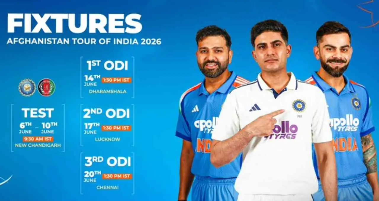 भारत और अफगानिस्तान (Afghanistan) के बीच आगामी क्रिकेट सीरीज का शेड्यूल भारतीय क्रिकेट कंट्रोल बोर्ड (BCCI) ने आधिकारिक तौर पर जारी कर दिया है। यह सीरीज जून 2026 में खेली जाएगी और इसमें एक टेस्ट मैच तथा तीन वनडे मुकाबले शामिल होंगे।