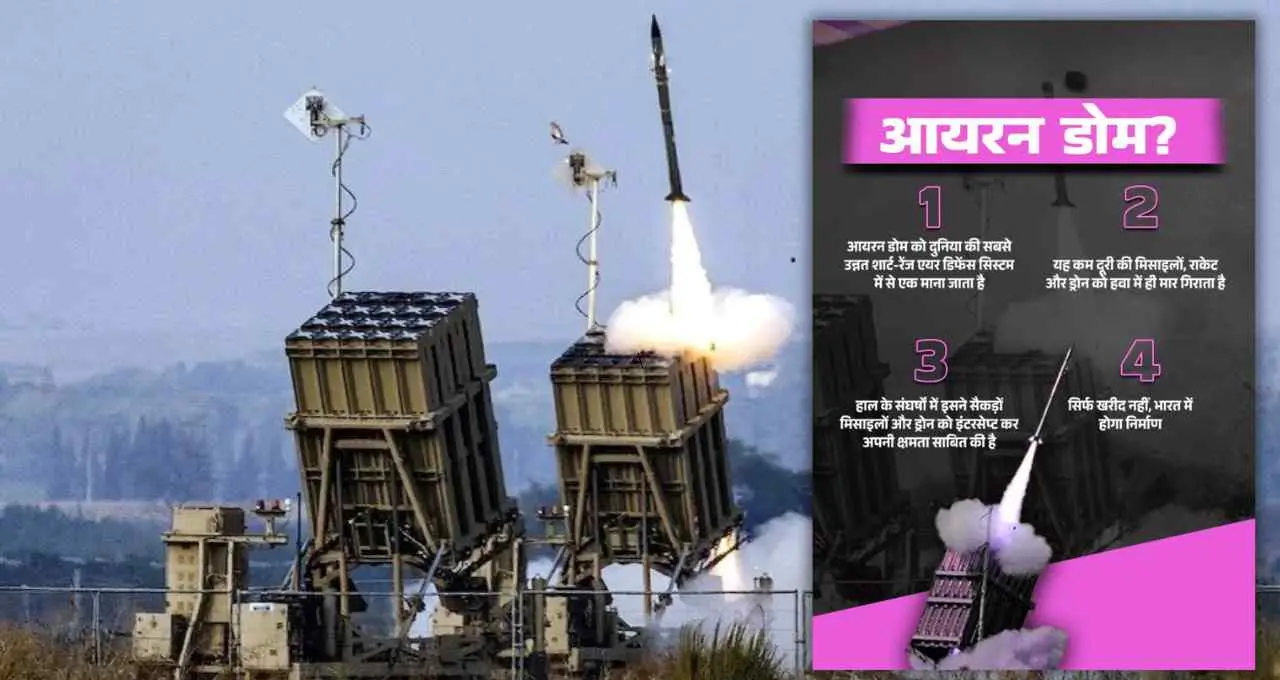 प्रधानमंत्री नरेंद्र मोदी के इजरायल दौरे के बीच भारत को आयरन डोम मिसाइल डिफेंस सिस्टम मिलने की संभावना जताई जा रही है। S-400 के साथ इसके एकीकरण से देश की मल्टी लेयर एयर डिफेंस क्षमता और मजबूत हो सकती है।