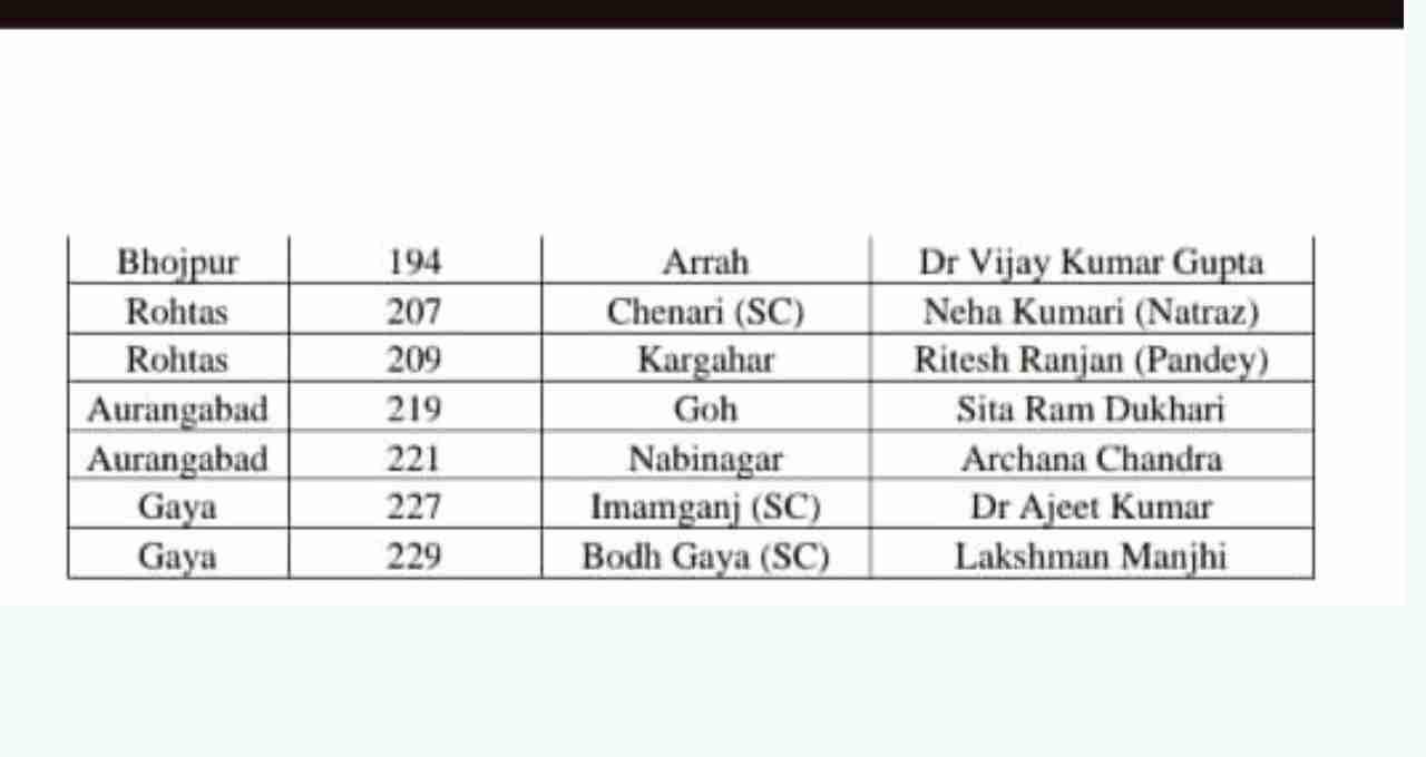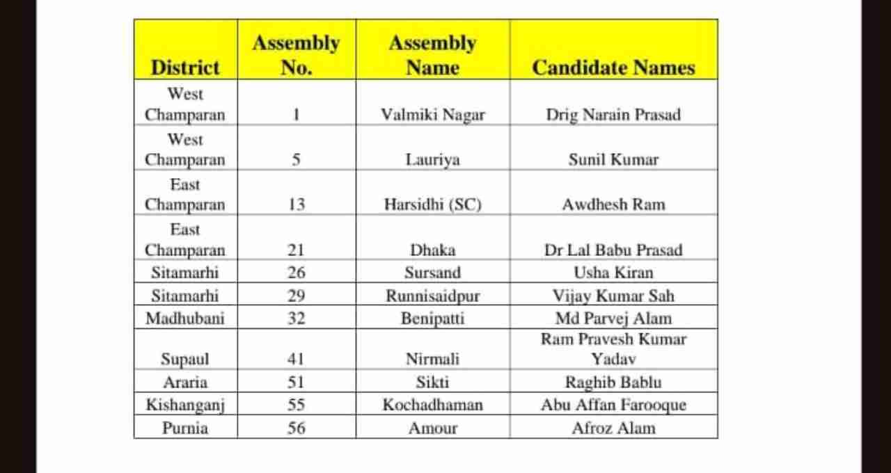 पहली लिस्ट में उत्तर बिहार से लेकर सीमांचल, मिथिलांचल और मगध क्षेत्र तक के उम्मीदवार शामिल किए गए हैं। पार्टी ने इस सूची में हर वर्ग और समुदाय के प्रतिनिधियों को जगह देने की कोशिश की है।