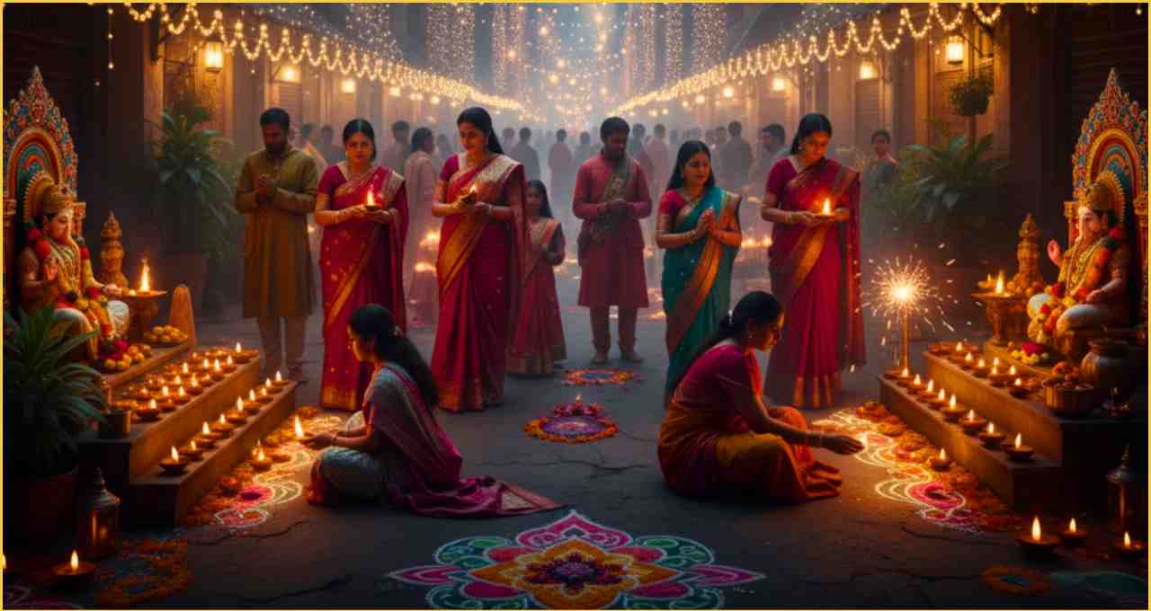 दिवाली की पूर्व संध्या पर लोग अपने घरों और दुकानों की सफाई करते हैं। दीयों और रंगोली से सजावट करते हैं। शाम को मां लक्ष्मी और भगवान गणेश की पूजा करके नए साल और समृद्धि की कामना करते हैं। घरों में मिठाइयां बांटी जाती हैं और पटाखों से उत्सव को और भी जीवंत बनाया जाता है।