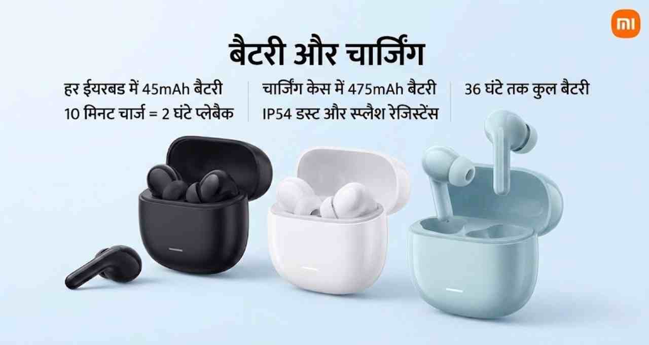 हर ईयरबड में 45mAh की बैटरी है, जबकि चार्जिंग केस में 475mAh बैटरी दी गई है। एक बार चार्ज करने पर ईयरबड्स 8 घंटे तक चल सकते हैं और चार्जिंग केस के साथ 36 घंटे तक बैटरी सपोर्ट मिलता है। फास्ट चार्जिंग से सिर्फ 10 मिनट चार्ज करने पर 2 घंटे का बैटरी बैकअप मिलता है।