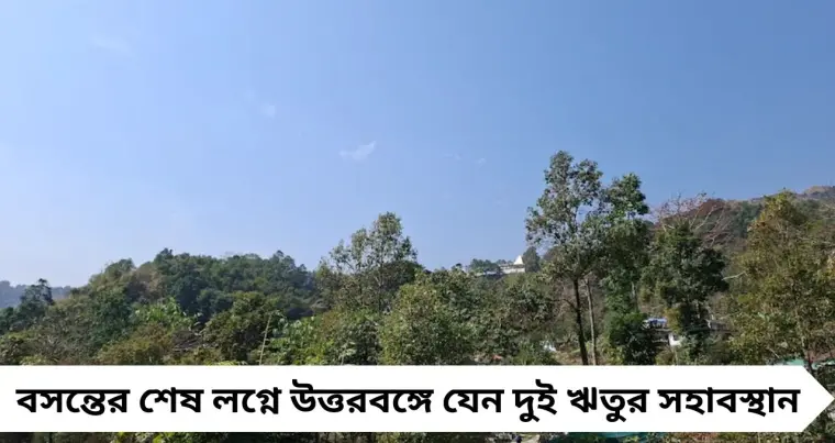 বসন্তের শেষ লগ্নে উত্তরবঙ্গে যেন দুই ঋতুর সহাবস্থান। পাহাড়ে সকাল–সন্ধ্যায় ঠান্ডা হাওয়া, আর সমতলে দুপুর গড়াতেই রোদের তেজ। তাপমাত্রার ওঠানামায় স্পষ্ট হচ্ছে গরমের আগমনী বার্তা। আবহাওয়া দফতরের পর্যবেক্ষণে সামনে আসছে বড় পরিবর্তনের ইঙ্গিত।