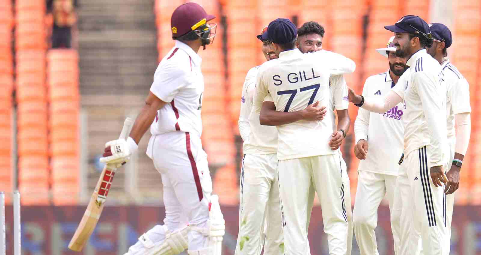 स्पोर्ट्स न्यूज़: पहले टेस्ट के पहले दिन के खेल समाप्त होने तक भारत ने 2 विकेट खोकर 121 रन बना लिए हैं। इस तरह टीम इंडिया अपनी पहली पारी में अभी भी 41 रनों से पीछे है। अहमदाबाद के नरेंद्र मोदी स्टेडियम में खेले जा रहे इस मैच में वेस्टइंडीज की टीम पहले बल्लेबाजी करते हुए केवल 162 रन ही बना सकी। कैरेबियाई टीम के लिए जस्टिन ग्रीव्स ने सर्वोच्च 32 रन बनाए। भारत की ओर से सबसे प्रभावशाली गेंदबाजी मोहम्मद सिराज ने की, जिन्होंने कुल 4 विकेट चटकाए।