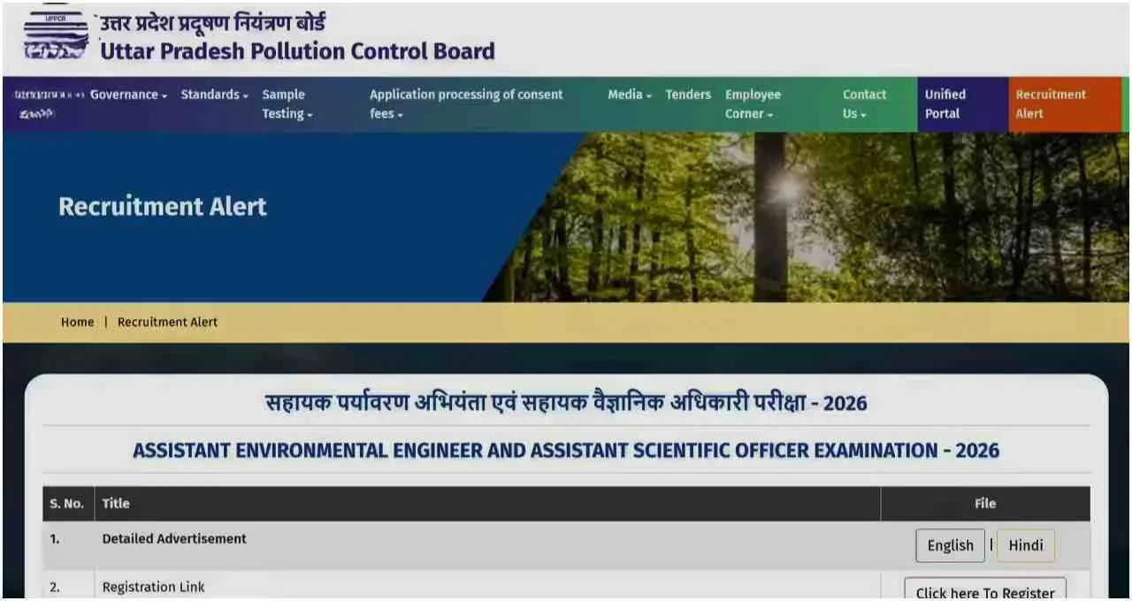 उत्तर प्रदेश पॉल्यूशन कंट्रोल बोर्ड ने असिस्टेंट एनवायरमेंटल इंजीनियर और असिस्टेंट साइंटिफिक ऑफिसर के पदों पर भर्ती के लिए नोटिफिकेशन जारी किया है। इस भर्ती प्रक्रिया के तहत कुल 40 पद भरे जाएंगे, जिनमें 26 पद असिस्टेंट एनवायरमेंटल इंजीनियर और 14 पद असिस्टेंट साइंटिफिक ऑफिसर के हैं।