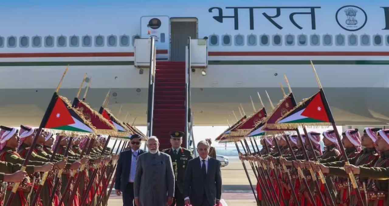 PM Modi Visit: प्रधानमंत्री नरेंद्र मोदी दो दिवसीय दौरे पर जॉर्डन पहुंचे हैं। उनका यह दौरा भारत और अरब देशों के बीच द्विपक्षीय संबंधों को और मजबूत करने के उद्देश्य से किया जा रहा है। अम्मान हवाई अड्डे पर जॉर्डन के प्रधानमंत्री जाफर हसन ने पीएम मोदी का औपचारिक स्वागत किया। इस यात्रा का निमंत्रण किंग अब्दुल्ला द्वितीय बिन अल हुसैन ने दिया है।