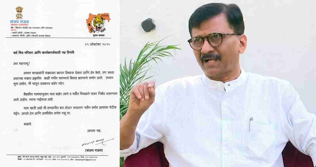 संजय राउत ने अपने पत्र में कहा, “जय महाराष्ट्र! सभी मित्रों, परिवार और कार्यकर्ताओं से विनम्र निवेदन है, आपने हमेशा मुझ पर विश्वास और प्यार बनाए रखा है। लेकिन अब अचानक पता चला है कि मेरे स्वास्थ्य में कुछ गंभीर गिरावट आई है। इलाज जारी है और मैं जल्द ठीक हो जाऊंगा। चिकित्सकीय सलाह के अनुसार, मुझे बाहर जाने और भीड़ से मिलने से मना किया गया है। मुझे विश्वास है कि मैं ठीक होकर नए साल में आप सबसे मिलूंगा। आपका स्नेह और आशीर्वाद यूं ही बना रहे।”